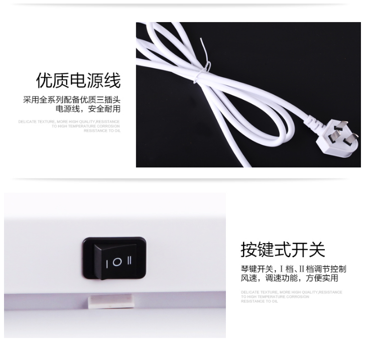噴粉外殼防銹美觀,堅(jiān)固耐用不易變形,方形結(jié)構(gòu)鉚接固定更牢固穩(wěn)定。科學(xué)設(shè)計(jì)風(fēng)輪間隙,進(jìn)風(fēng)更順暢。超大出風(fēng)口,風(fēng)層厚,運(yùn)用多個(gè)導(dǎo)風(fēng)件減少斷風(fēng)段,風(fēng)力,風(fēng)速高達(dá)25m/s,滿足高要求和特殊安裝場合。采用離心熱鍍鋅鋼板蝸輪,安全可靠,經(jīng)久耐用。高速純銅電機(jī),持續(xù)運(yùn)行5000小時(shí)無故障。按鍵開關(guān),單相機(jī)型具有高低兩級調(diào)速功能,遙控可選。適用于廠房、冷庫、車庫等對風(fēng)量有高要求的場合。