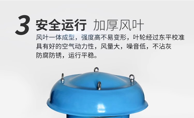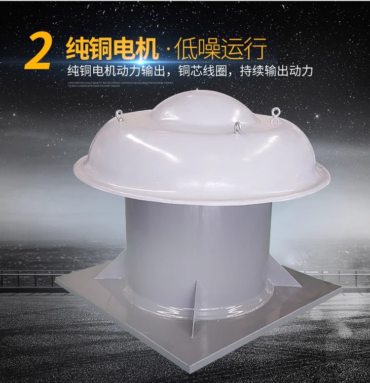 屋頂風機安裝的基礎須高出屋面,表面要求平整,以防滲水漏水,并須預埋好地腳螺栓。2、風機底座與基礎之間加墊一層5mm橡膠板,以減少振動,地腳螺栓應配有彈簧墊圈,防止使用時松動。3、屋頂風機出口的管徑只能變大、不能變小,后出風口要安裝防蟲網,偏向上出風時須增加風雨帽;如遇冬季下雪,冰凍日期,必須經常開動,以防大雪堵塞風機出口。4、屋頂風機與風管采用軟管(柔性材料且不燃燒)連接,長度不宜小于200mm、管徑與屋頂風機進出口尺寸相同。為保證軟管在系統運轉過程中不出現扭曲變形,應安裝的松緊適度。對于裝在屋頂風機吸入端的帆布軟管,可安裝稍緊些,防止屋頂風機運轉時被吸入,減少帆布軟管的截面尺寸。